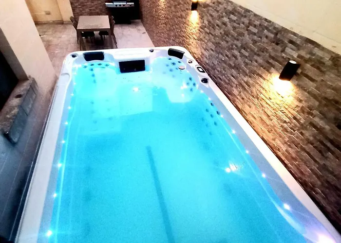Das Luxurious Apartment With Heated Pool Jacuzzi bietet seinen Gästen einen Patio sowie moderne Annehmlichkeiten wie eine Klimaanlage. Es gibt Zimmer mit Fliesenböden. Die Unterkunft verfügt über ein Badezimmer mit Toilettenartikeln und Badelaken. Außerdem gibt es ein Bidet, eine Badewanne und eine getrennte Toilette usw.